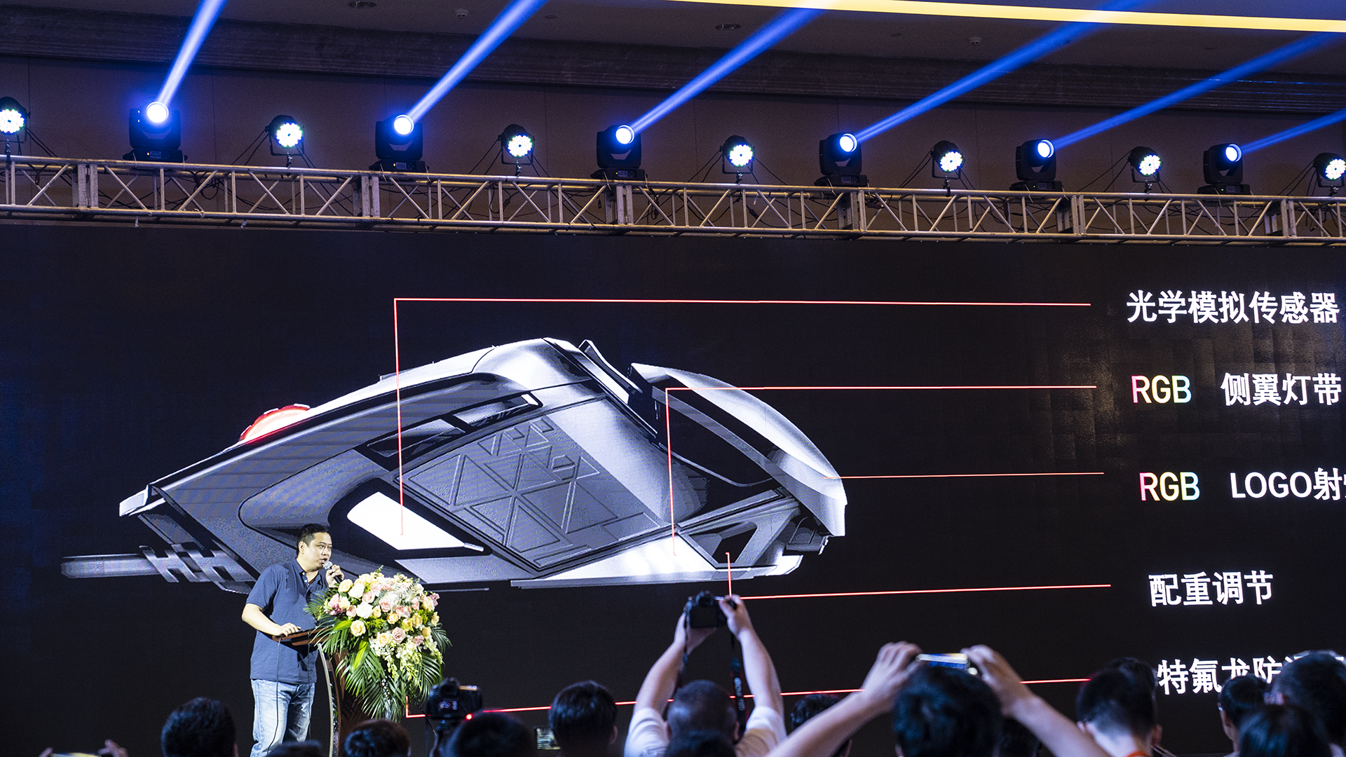 搭配了自适应掌托最关键的是,这款鼠标有信仰投射灯!