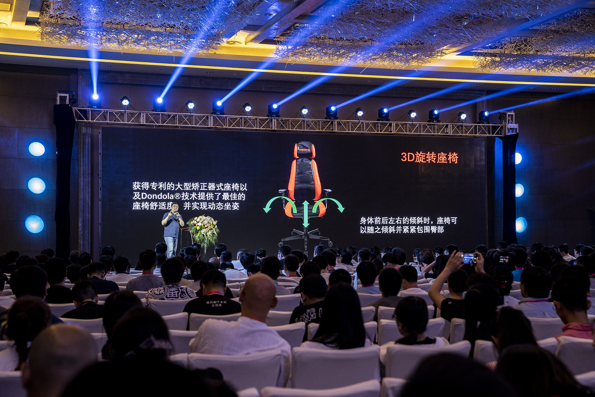关于这把GC5.0我也体验了一下,坐上去感觉还OK,但没有“特别特别舒服的感觉”。随行的朋友坐完之后说,椅子这东西,做个一周就能明显感觉到优劣了,光往哪里一趟,几分钟,很难说明什么问题,长期的作用我们现在很难体会。 另外这款椅子带矫正辅助功能,同时也希望它真的能如临床试验的结果一样,对部分颈椎有问题的用户给与积极的效果。朋友的一句话我比较认同,椅子坐得久了就明白它的优劣了。 比较辛苦的CHERRY员工,我发现他们的员工都很年轻。