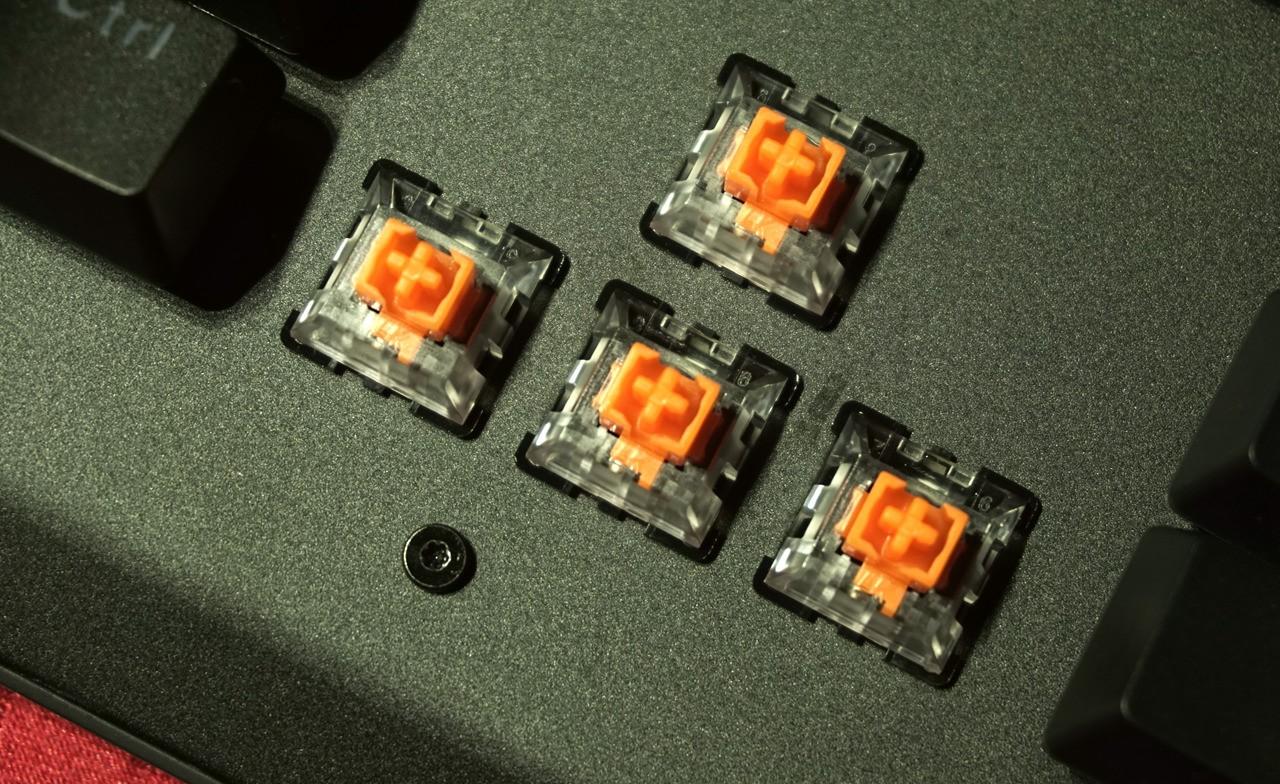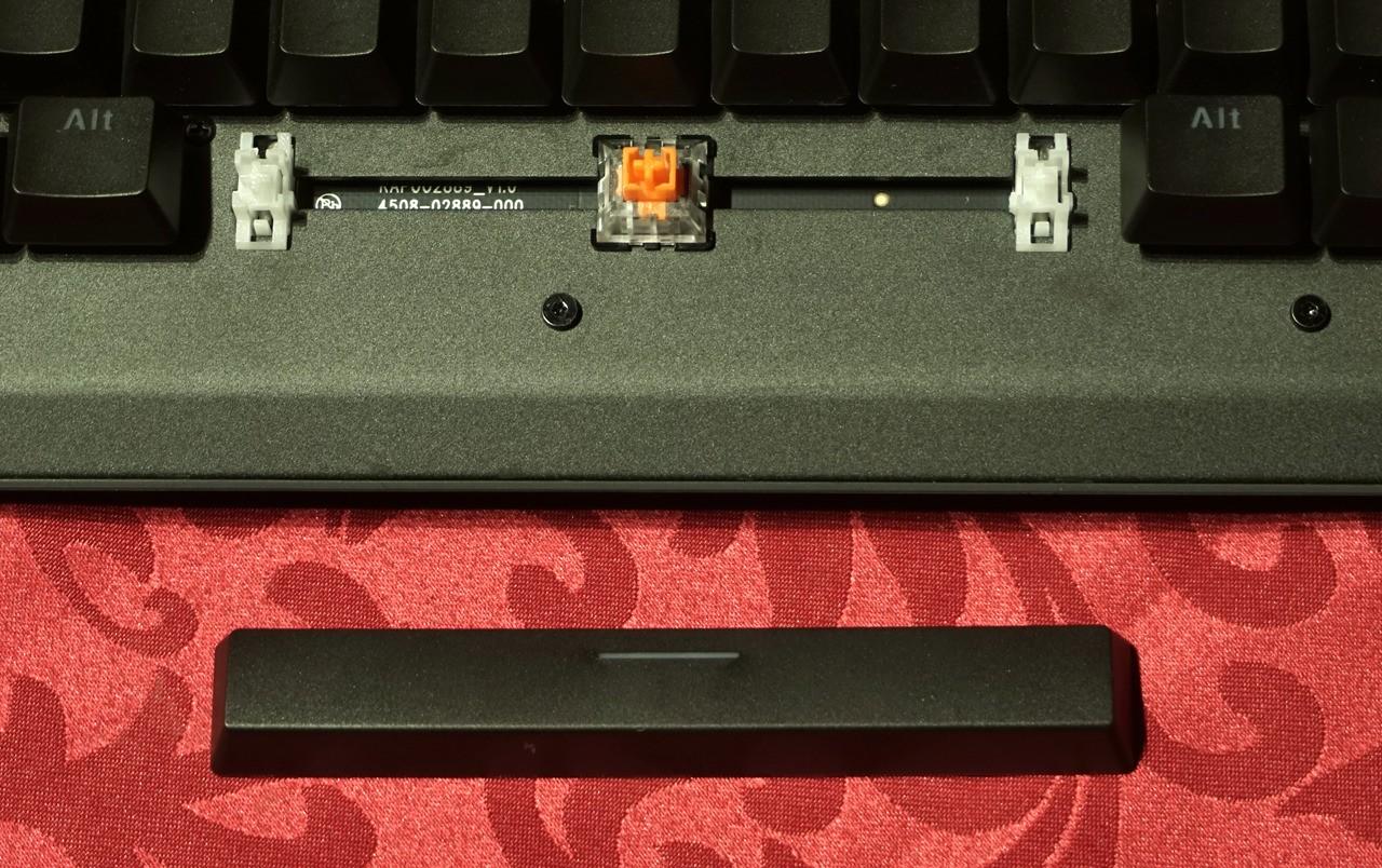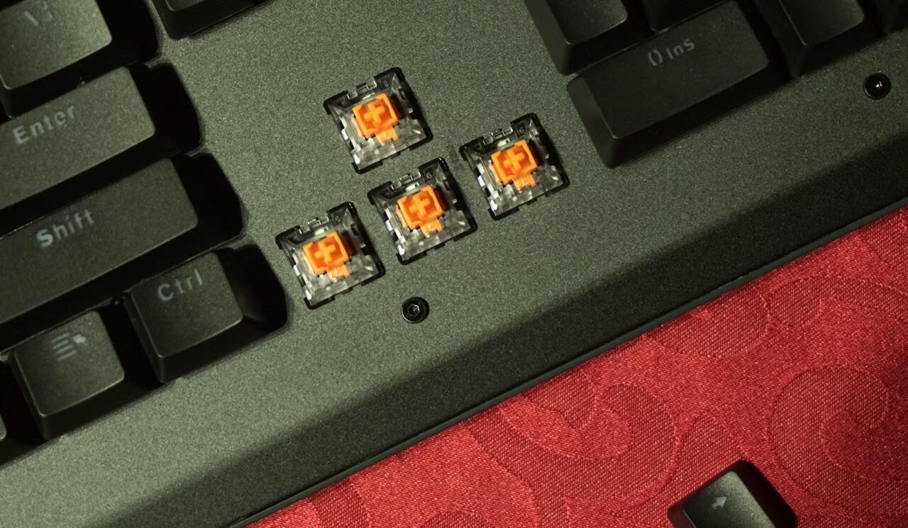 轴体使用LK光轴,LK轴体结构和传统机械开关结构有所不同,无金属触点设计 ,不会出现按键双击,而且寿命比cherry轴的5000万次还要多,高大6000万次的点击数寿命。LK光轴轴盖颜色为橘色,有段落感类似青轴手感。大键位采用卫星轴设计,回弹反馈明显有力,反弹迅速。