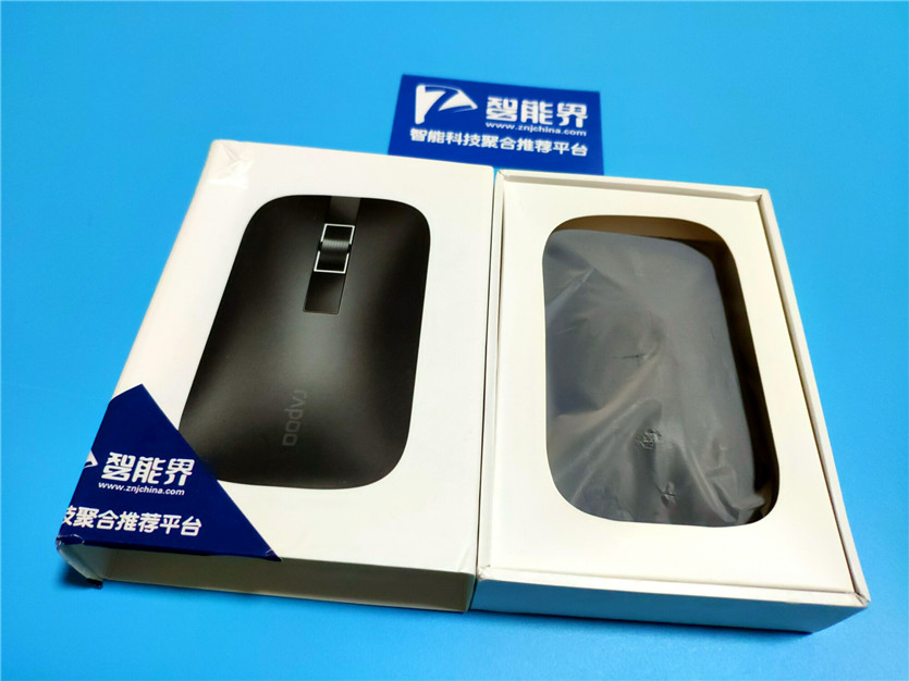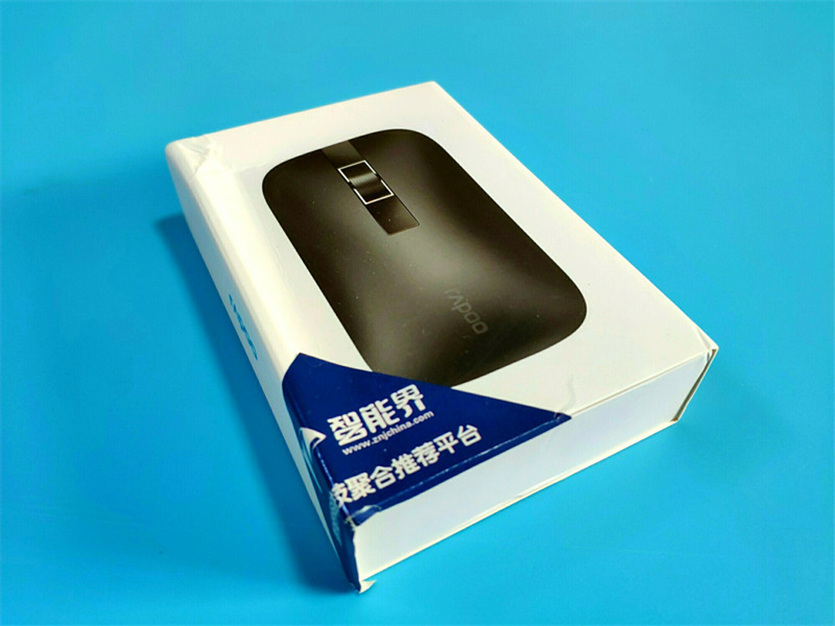 抽拉式的设计打开上并不费力,其内部并没有做太多的保护,依然保持了其简洁的设计风格。鼠标被一层塑料膜包裹,可以起到很好的防划效果,让雷柏M550多模式无线鼠标以更加崭新的面貌与你相遇。