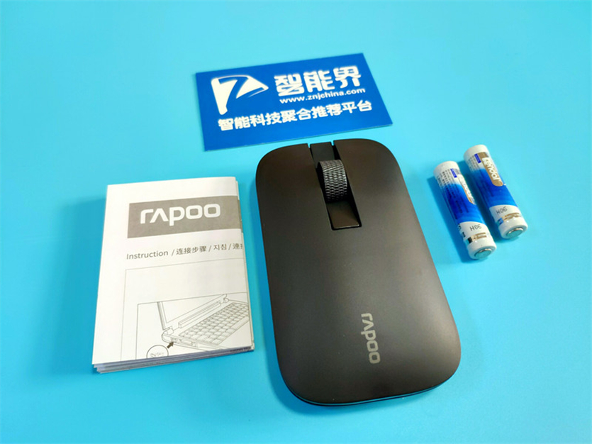作为一款无线鼠标,其包装内除了鼠标、说明书外,还十分贴心的附送有两节干电池,常规配置,轻松上手使用。