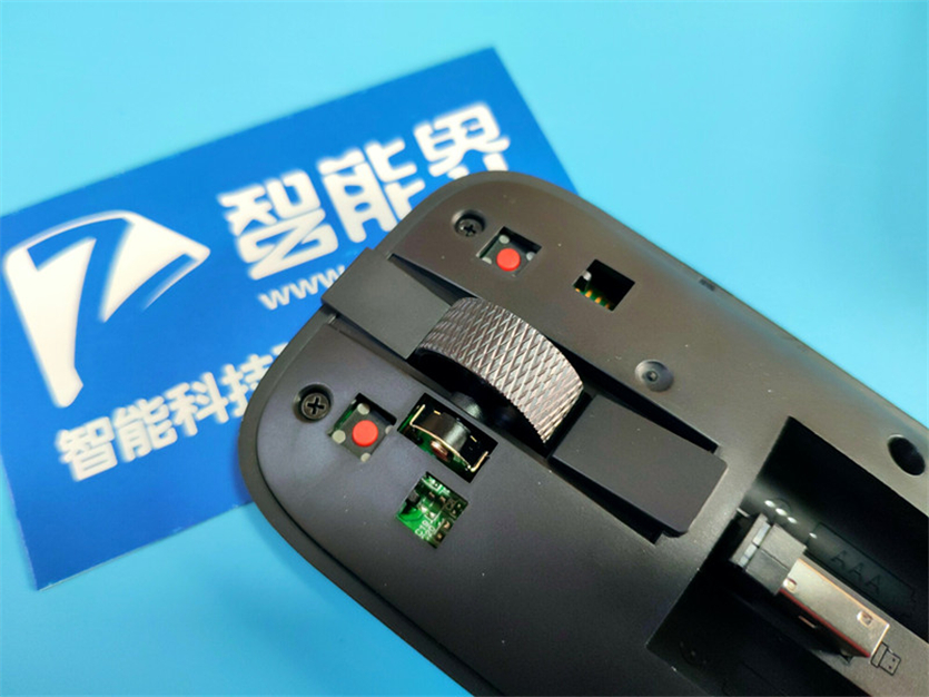 鼠标的背面下方可以看到两颗实体按键,分别是其电源开关按键和模式切换按键,两者相互配合,可以轻松实现鼠标的配对,多模式下的自由切换,操作使用上十分的灵活便捷。