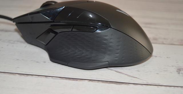 鼠标两边的侧裙都采用了软胶材质,不规则的纹路的防滑性比较优秀。