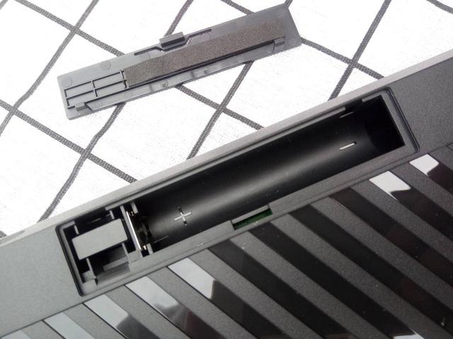 底部上方设有电池仓,采用了2节5号电池,方便在无线状态下使用,旁边还收纳有2.4G接收器。