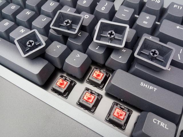 拔键器比较小巧轻便,拿取键帽便捷,能看到内部的cherry红轴,方便定期清理键盘,同时也方便喜欢DIY的玩家更换键帽,制作有个性的键盘。红轴比较适合电竞游戏中使用,而樱桃轴体也适合日常上网办公使用。