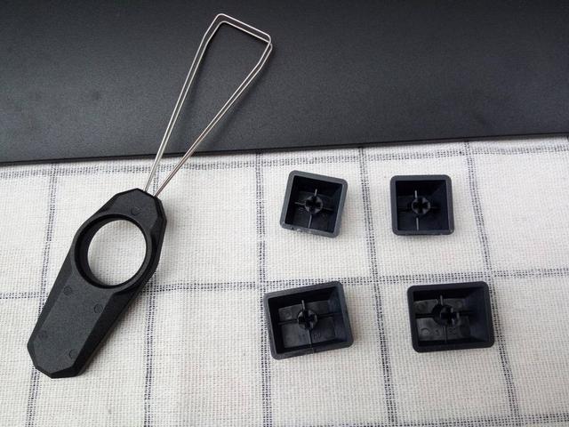 拔键器比较小巧轻便,拿取键帽便捷,方便定期清理键盘,标配PBT材质键帽,字体是镭雕而成,不易退色,不易打油,同时也方便喜欢DIY的玩家更换键帽,制作有个性的键盘。