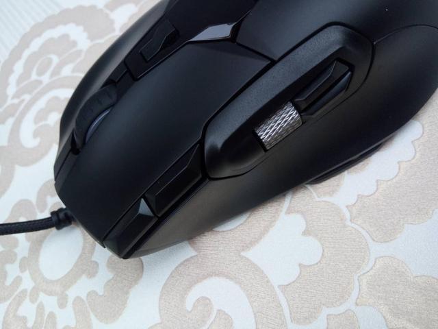 左侧的侧滚轮设计比较别致,采用了金属材质,并进行了菱形纹理处理,能比较轻松精确稳定的滚动避免防滑,方便在办公模式下提升办公软件的操作效率。侧前进键和侧后退键,采用了上下位置设计,表面有明显的立体感,方便在光线暗的环境中盲操。