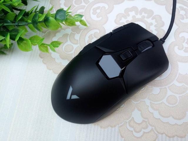 雷柏V330采用了12个按键设计,比普通鼠标多了不少按键,除了标配的左右主键和滚轮键外,还在左侧边增了6个按键。其中滚轮键中心轴处的是DPI键,左主键的左上角增加了前进键和后退键,左侧面添加了侧滚轮键、侧前进键和侧后退键。