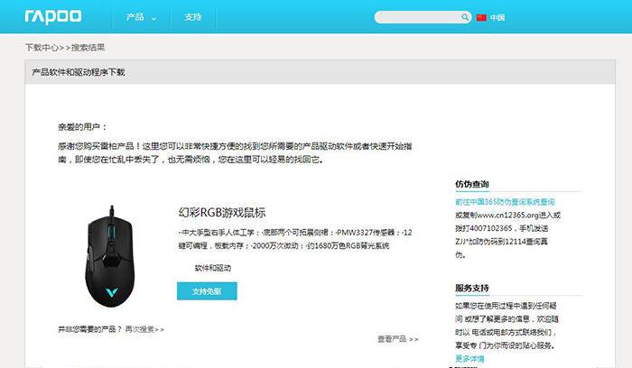 雷柏 V330 游戏鼠标拥有专属独立的驱动程序,可以通过官网下载中心搜索对于型号进行下载安装。安装完毕后就可以通过软件界面进行鼠标的一些设置调节了。