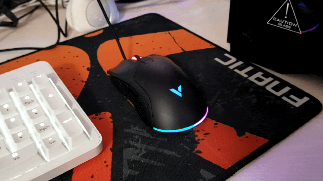 鼠标整体尺寸为127x65.5x40mm,大小适中,适合正常手型的大部分有用户。鼠标精细的设计饱满的曲线,后部微微凸,让掌心能得到厚实支撑。前端下凹后缓缓回升,增加了手指预留放置空间。所以整体设计让它,长时间握持都能保持舒适感。 作为一款电竞游戏鼠标,没有背光系统还怎么配的上电竞二字。雷柏V30鼠标,在滚轮区、LOGO区以及尾部区都配有,约1680万色RGB背光效果。通过底部的背光灯切换键即可7种不同模式。