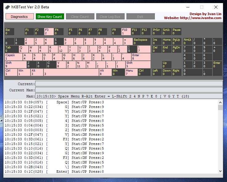 如果刚好处于复杂的游戏操作关键时刻,一个误操作,将可能影响到整体战局的胜负走向。K310可保持全键无冲突,当复杂操作来临时,不会出现按键冲突导致的输入不准现象发生。 hKBtest进行全键随机乱按测试,每次反馈都相当精准。