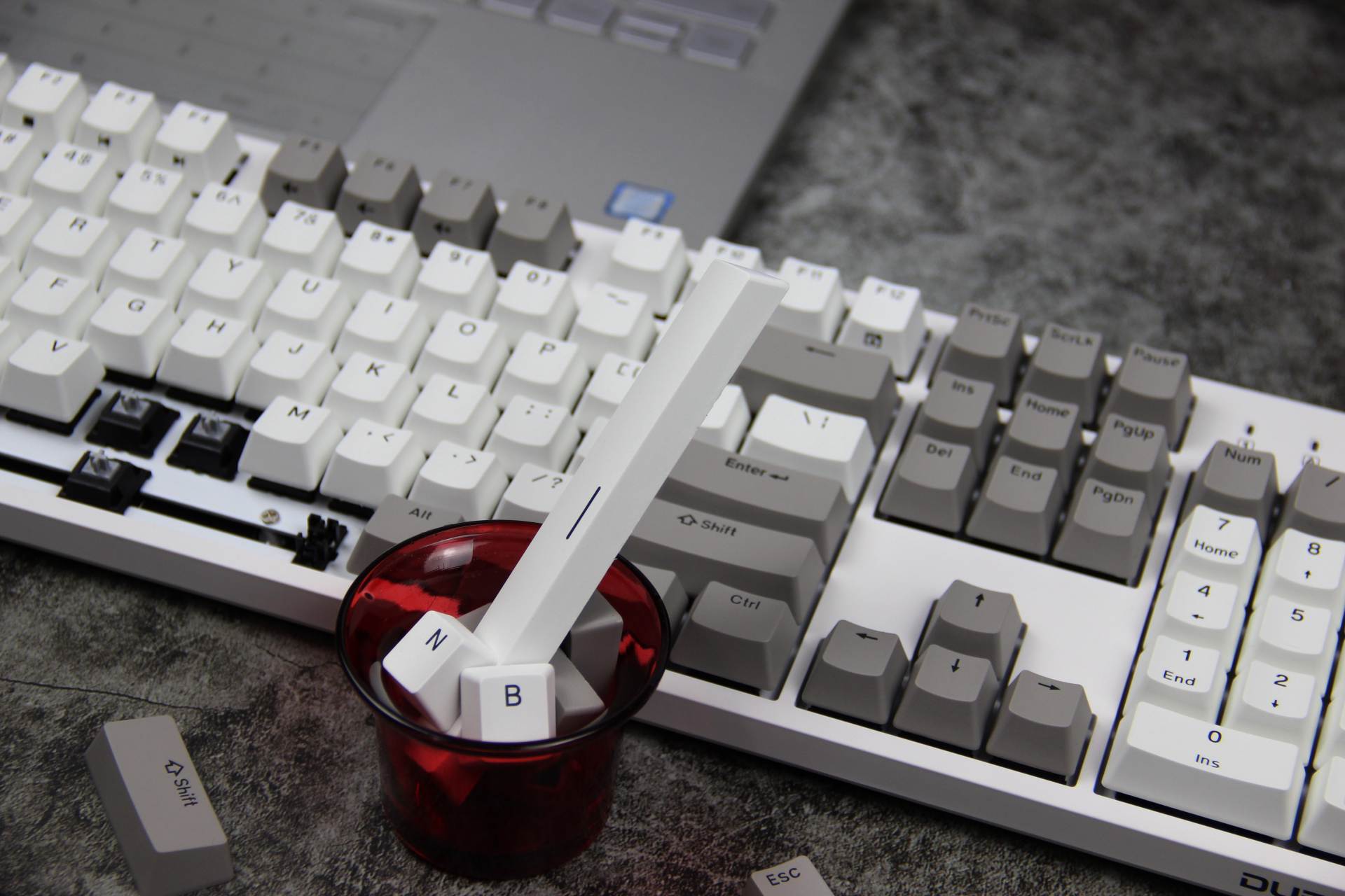 拆下键帽,摆出冰淇淋杯的造型,隐隐透着“NB”。