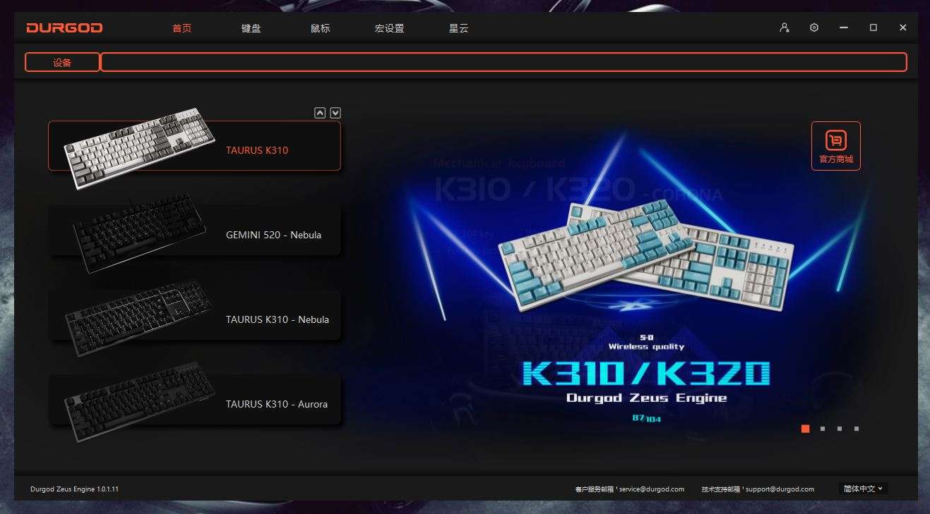 >体验有感<外在的优秀并不能掩盖住同样优秀的内在。K310内含32位ARM主控芯片坐镇,达到1000Hz回报率。 杜伽键盘内置存储记忆,似乎颇有深意。当了解到其自家的PC端宙斯(Zeus)驱动软件恍然大悟:这是要为按键设置添加隐形的翅膀。