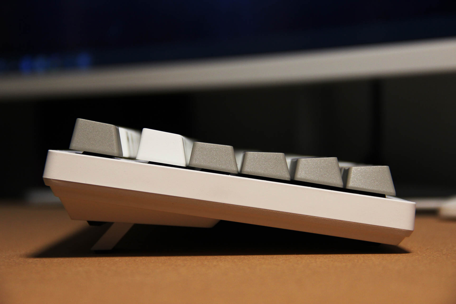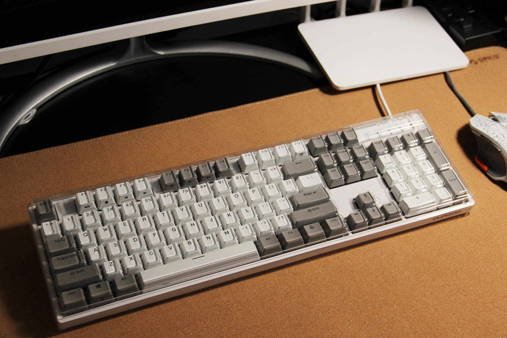 之前深色桌面搭配黑色键盘,使用起来总感觉视线昏暗,并不尽兴。杜伽K310带来亮眼的白色,桌面变得生机满满,又有些俏皮元素。