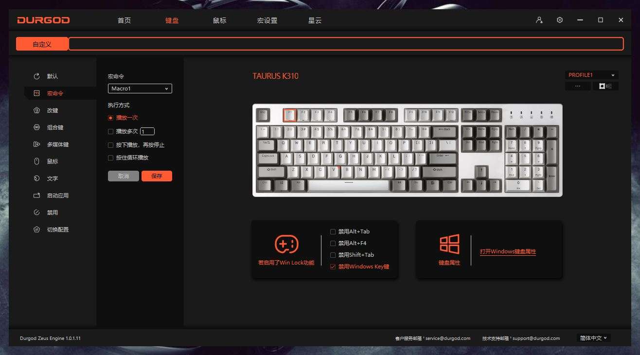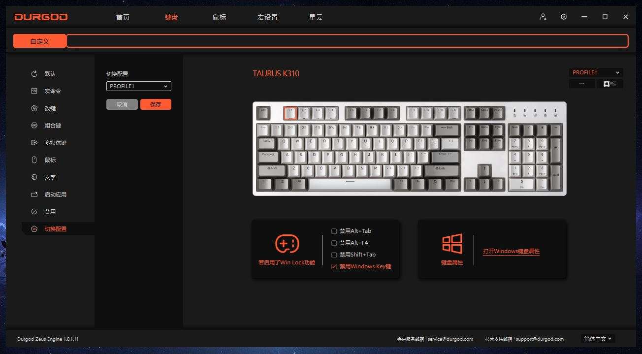 通过驱动可以完成自定义配置,生成配置指令文件集,可以保存多种配置。配置切换可以通过宙斯驱动界面完成,也可以通过Fn+F12的联合快捷键随时切换配置。
