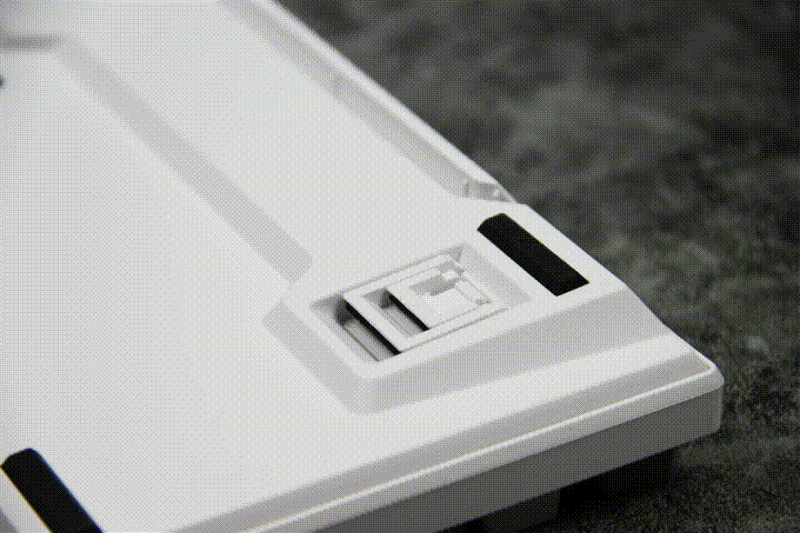 底面四角均布设有长胶条,键盘可以牢牢固定在桌面上,使用不滑动。阻尼减震效果优秀。