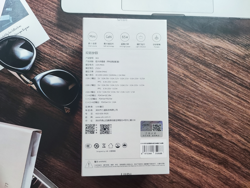 UIBI柚比65W智充集装箱的包装设计与产品名字相呼应,包装采用的就是凹凸有致的集装箱风格,质感和颜值做的都不错。包装正面是品牌名称Logo和产品名称,背面是产品的主要特点和主要信息。